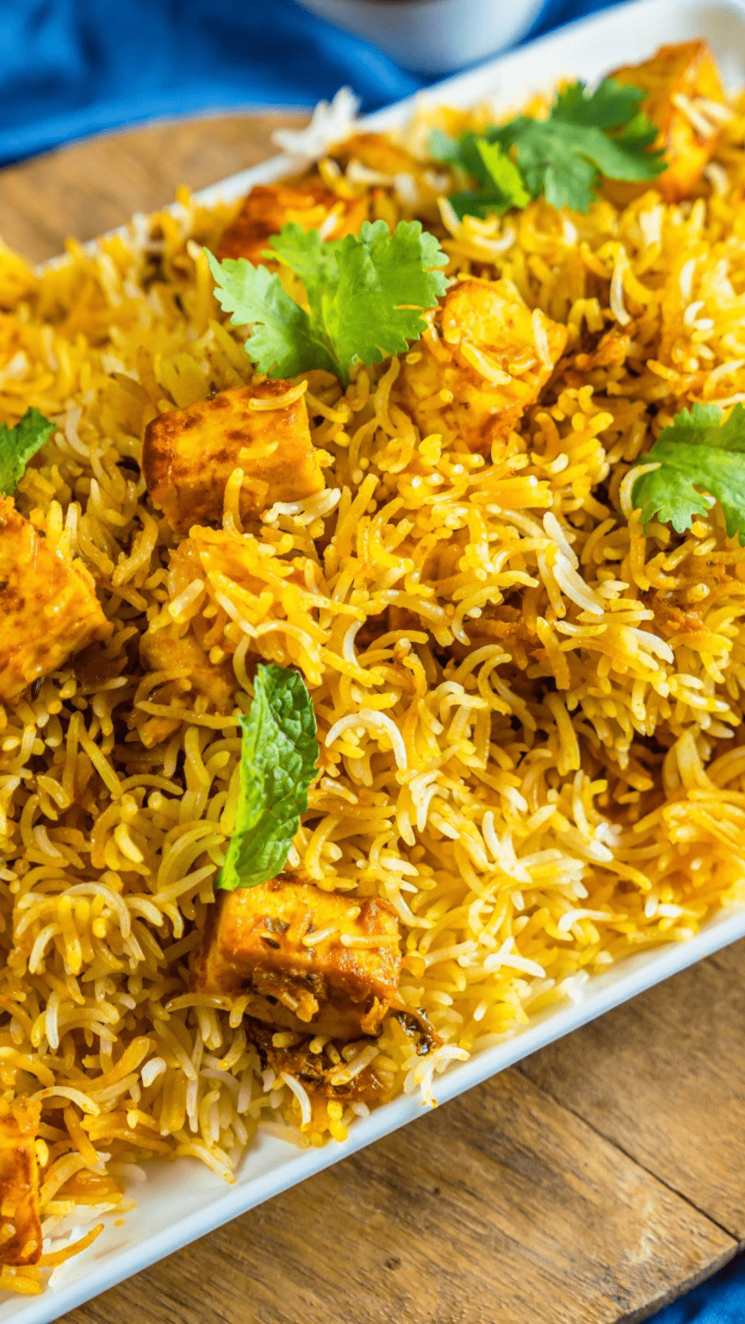 To make Tasty Paneer Biryani, add Kashmiri Red Chilli Powder, Garam Masala, and Coriander Powder.