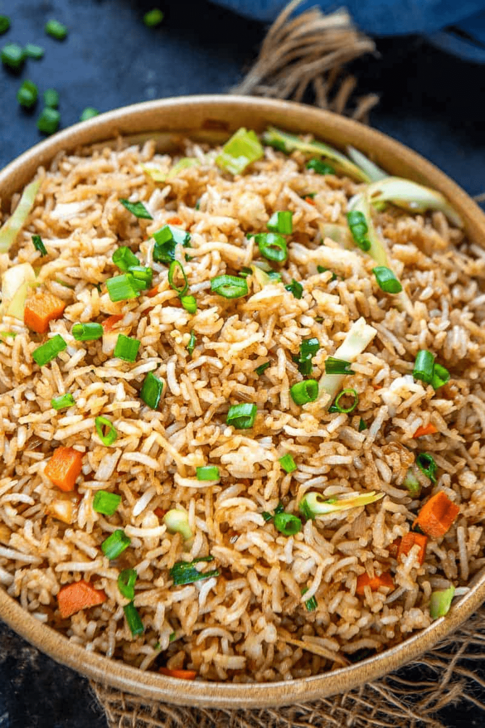 To make Tasty Veg Fried Rice, add chopped capsicum, cabbage, and carrot.
